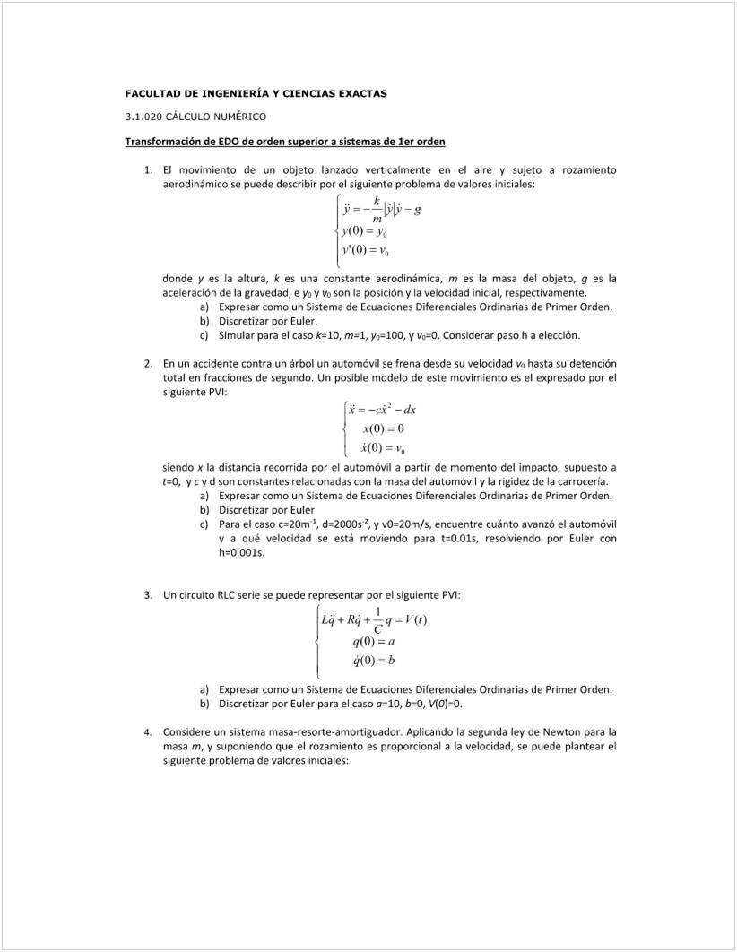 a) Plantearla como un sistema de EDO de orden uno.