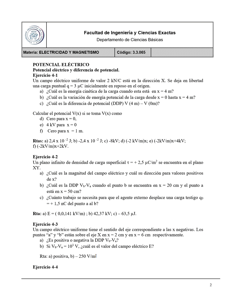 Guia 4 - Potencial Electrico